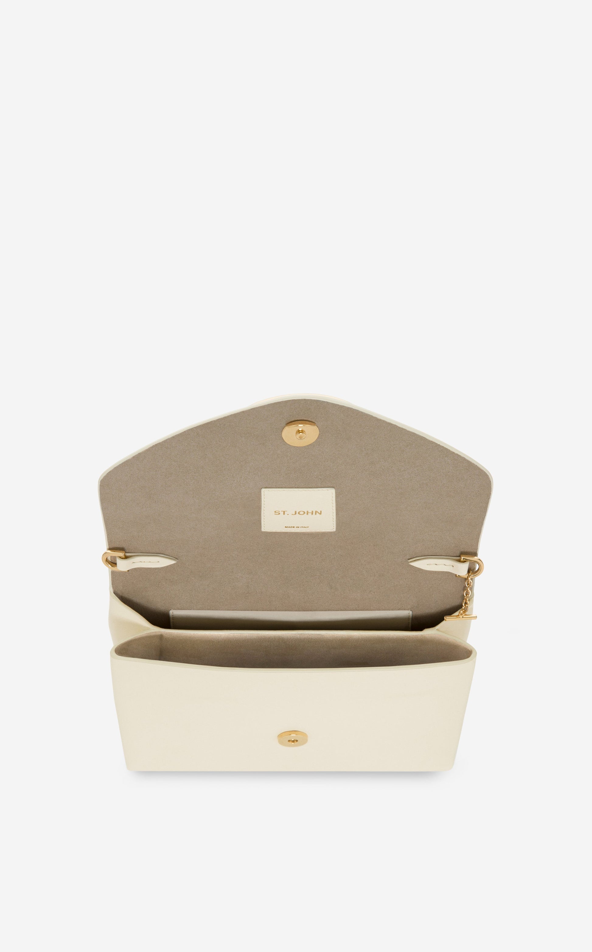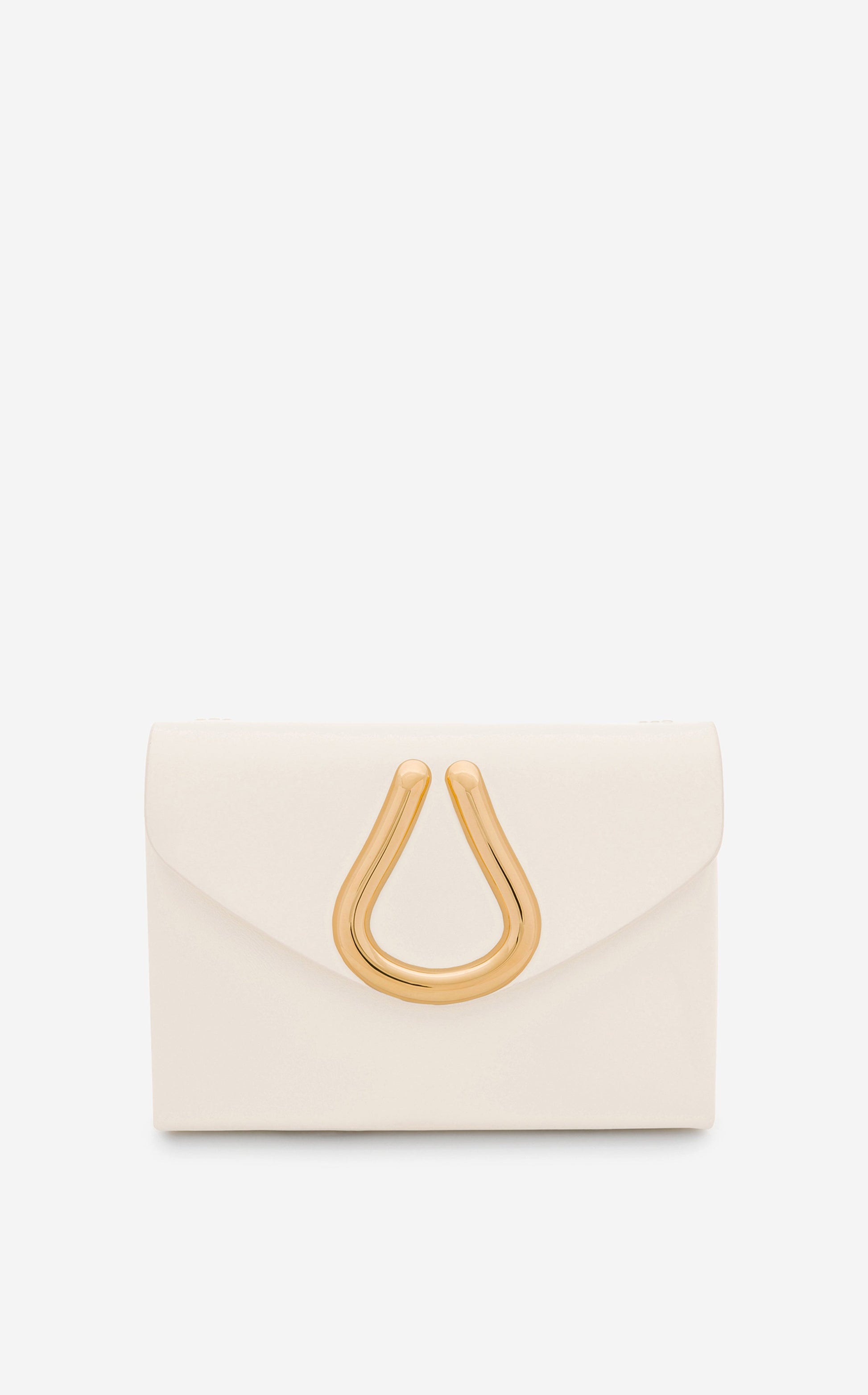 Small leather handbag with front flap, metal loop detail and removable chain strap. Complete your day-to-night looks with this small leather handbag, accented with a gleaming metal loop detail at the front and finished with a chainlink strap.