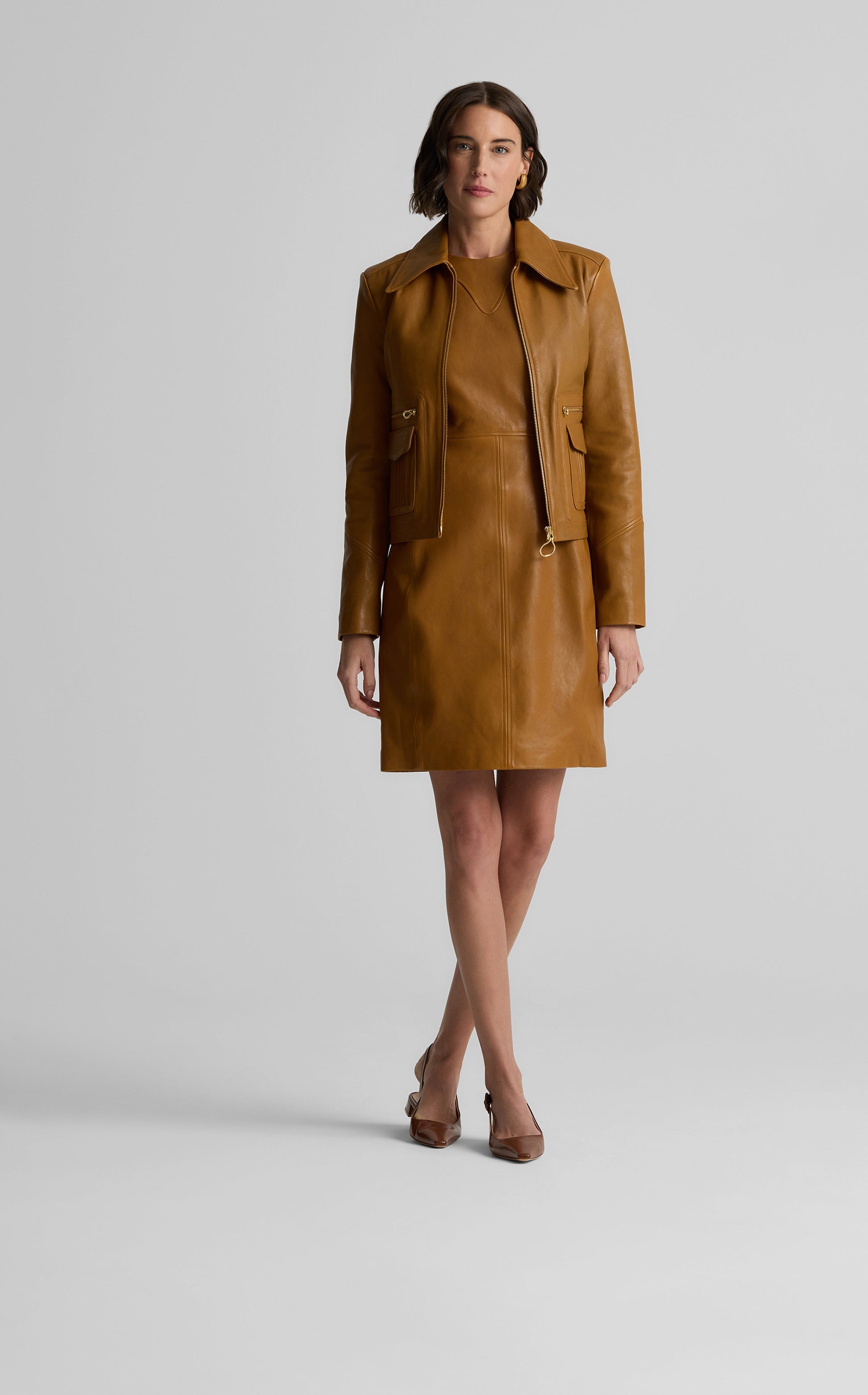 Made from soft washed leather in warm Cinnamon, this classic sheath dress is a luxe, subtly edgy addition to your collection of neutrals. The Julia’s crew neckline and waist-accentuating shape makes it a flattering and versatile wardrobe staple to be worn and treasured for years to come.