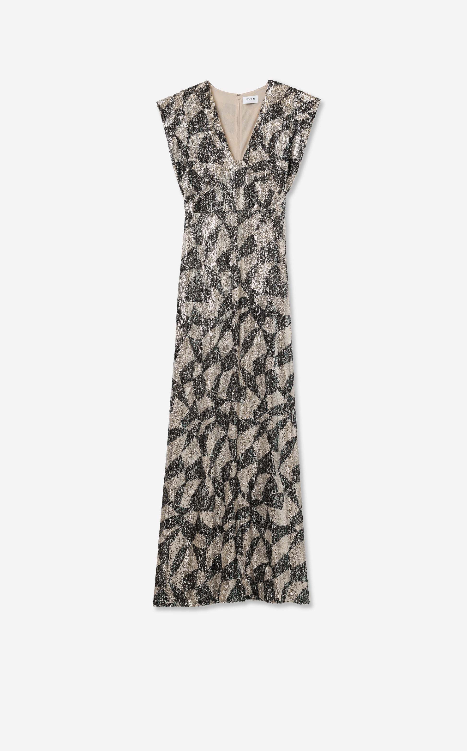 London Gown in Stretch Geo Paillettes