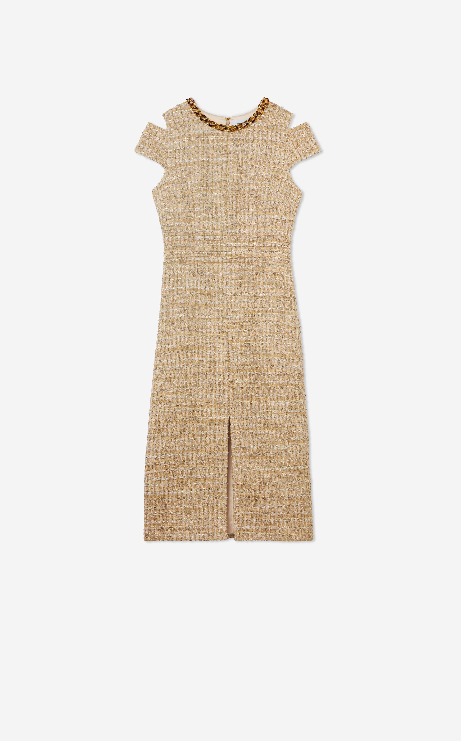 The Phoebe redefines the classic tweed sheath for the modern day wearer. For a uniquely refined edge, this sleek, figure-flattering silhouette, made from luxurious Linden Tweed, features a peekaboo cap sleeve and crew neckline gleaming with gold chain trim. Statement-making all on its own, this dress also pairs perfectly with the Josie Jacket to create a chic, coordinated set.