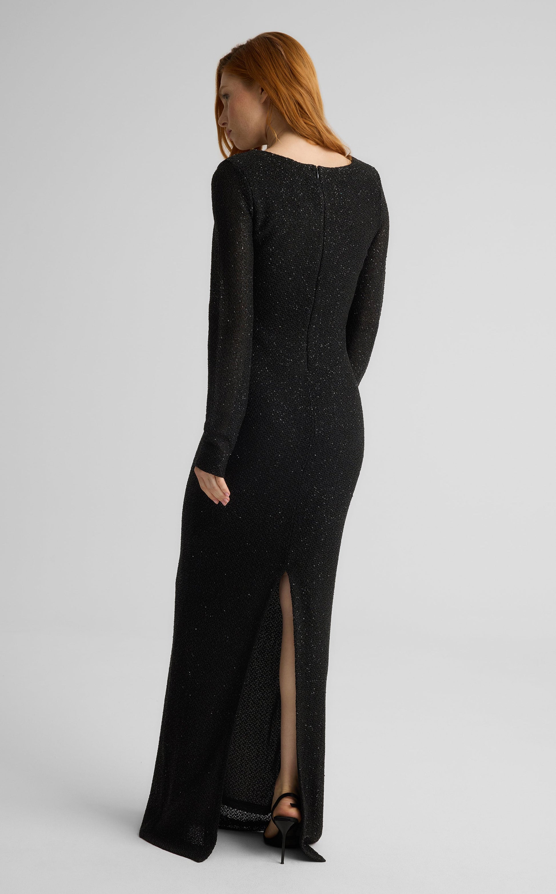A dazzling take on minimalism, the Nicole is the epitome of quiet elegance. Cut from curve-hugging stretch sequin knit in timeless Black, this classic evening silhouette was designed to move comfortably with you all night long—from drinks to dancing—leaving a lasting impression behind.