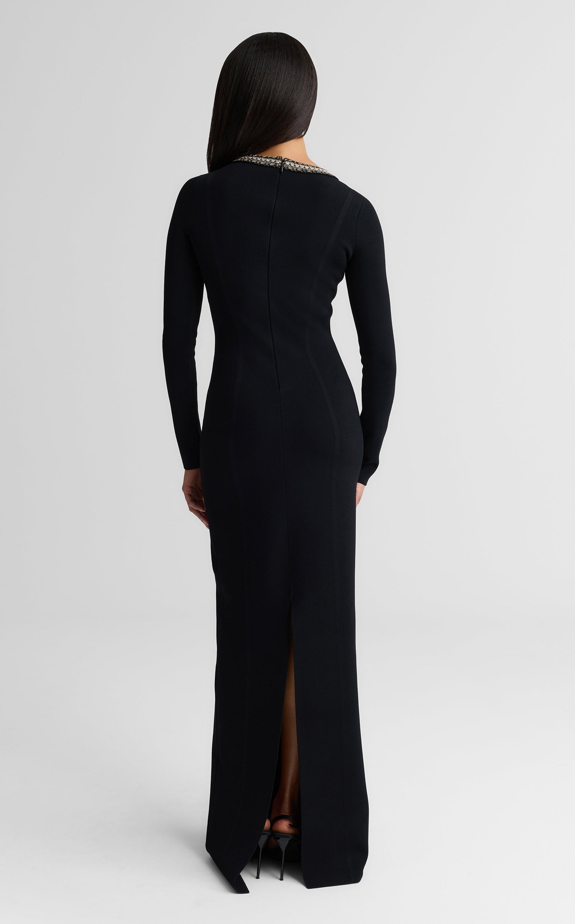 An archival design revived with modern details, the Alina represents quintessential St. John style. Signature Santa Roma Knit gives this dynamic gown its ease of wear, while a keyhole neckline with dazzling trim offers instant icon status.