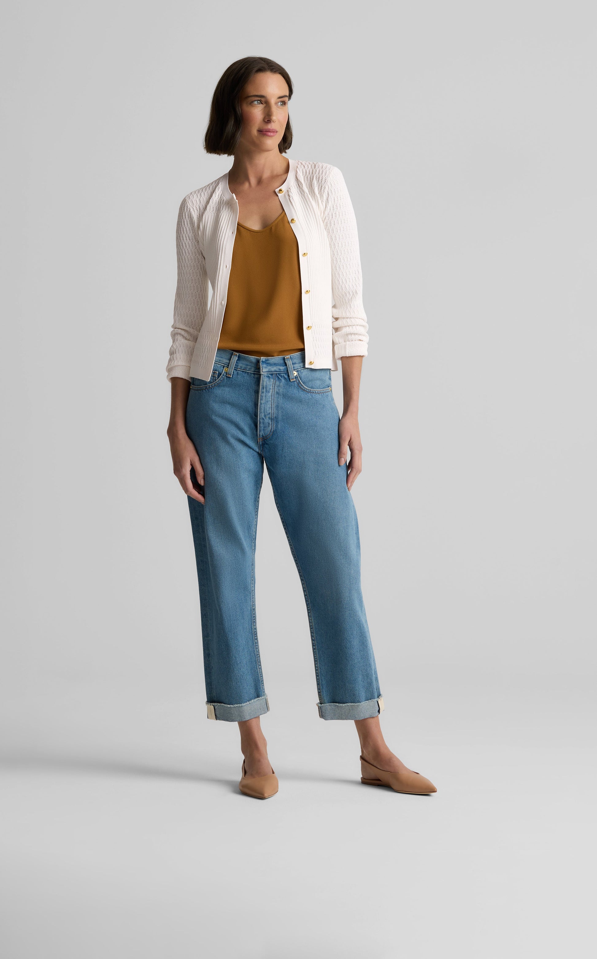 Timeless enough to fit seamlessly into every wardrobe, yet touched with decorative details that make it a standout, the River possesses all the polish of a classic cardigan—and then some. A crew neckline, set-in straight sleeves, and slim fit offer a crisp, clean look while the subtle texture and embellished buttons elevate this sweater well beyond other basics.