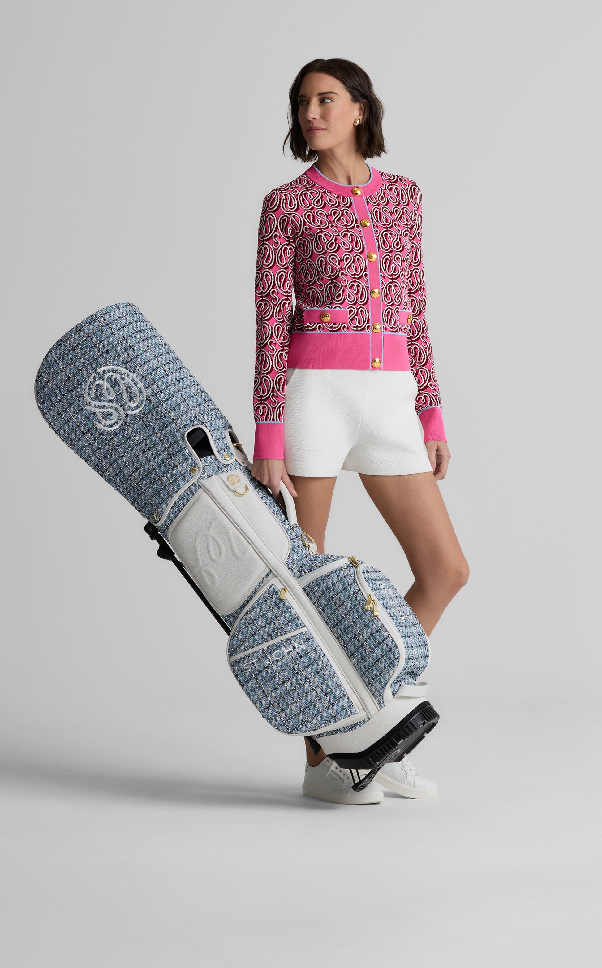 Created in an exclusive collaboration with influential golf brand Malbon, the Rosie makes a bold statement with its custom all-over logo print and matching embossed gold buttons. This cardigan’s classic silhouette also features ribbed trim for a comfortable fit and polished look that dresses up your game time attire and beyond.