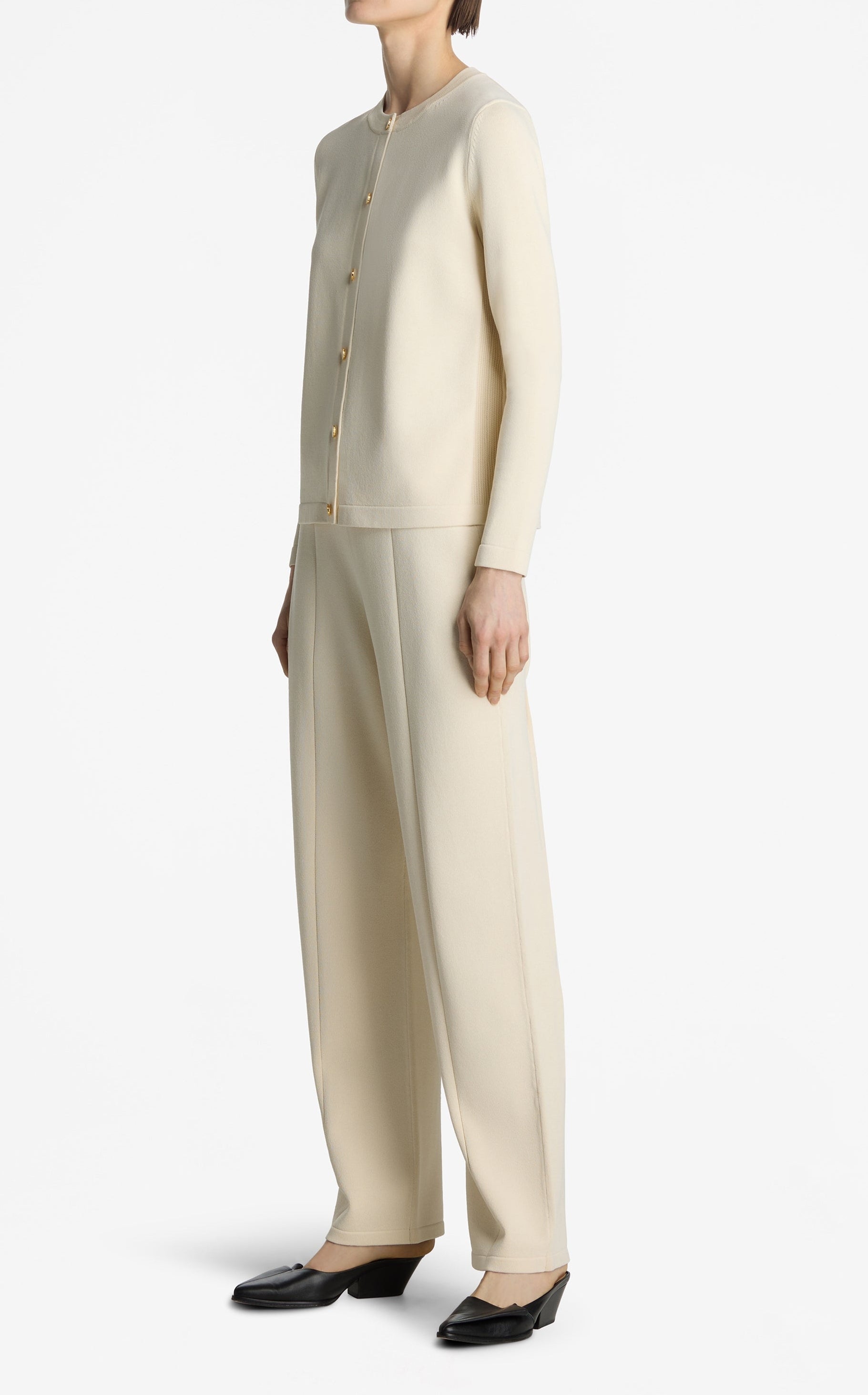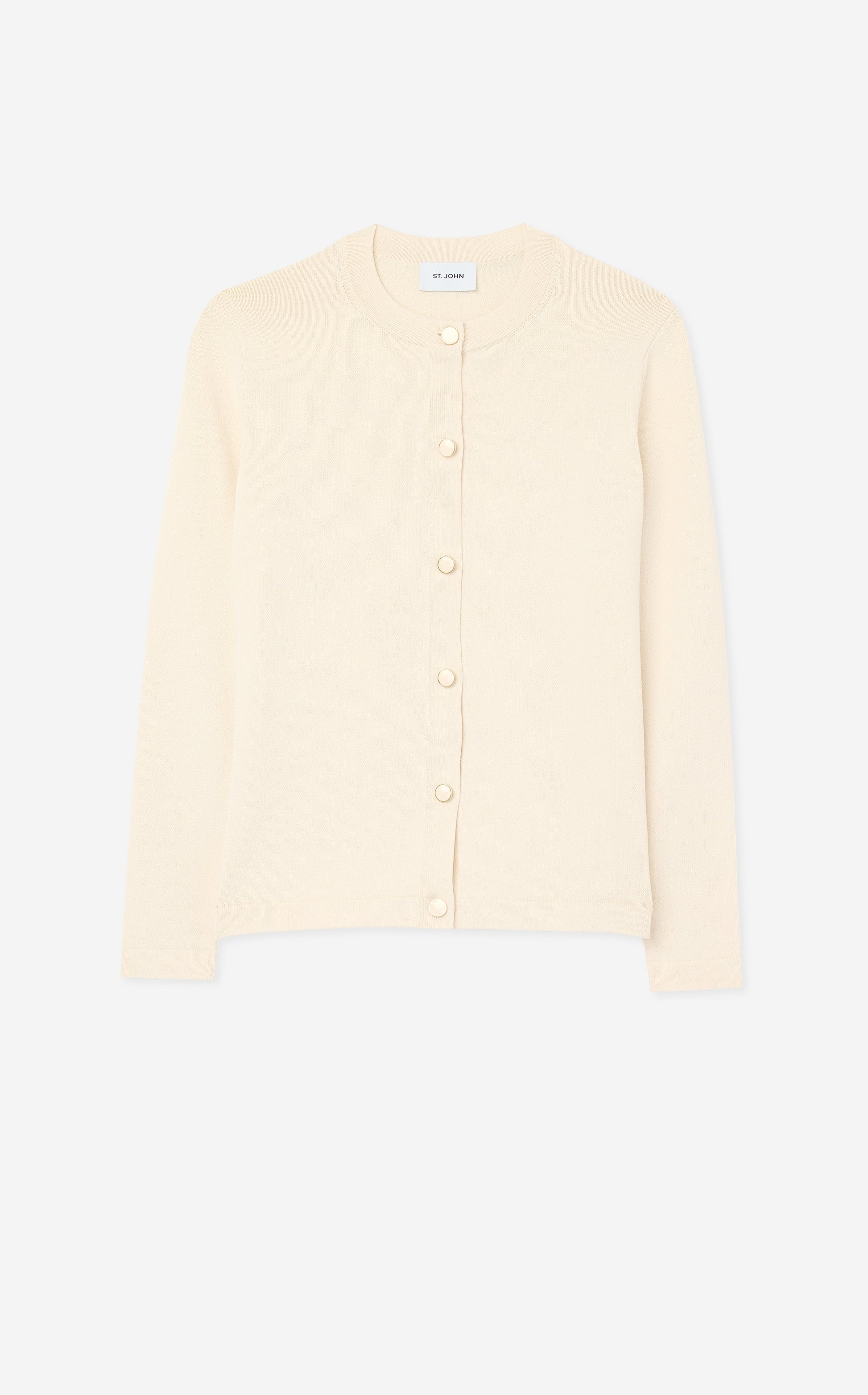 Meet your new favorite cardigan. Crafted in Santiago Knit and dotted with St. John's signature buttons, this innovative weave holds its shape in this forever classic sweater.