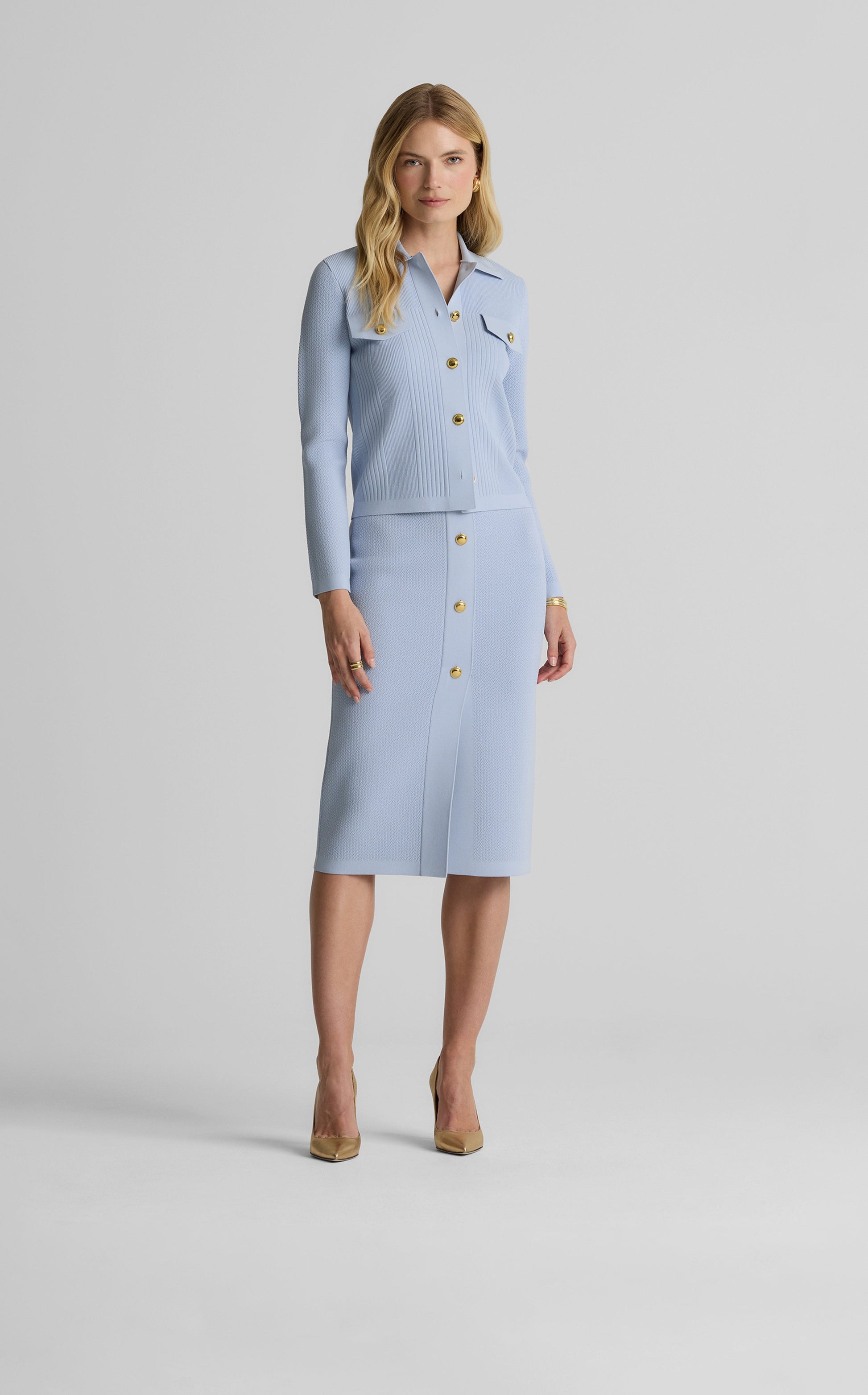 Worn on its own or layered over shells and tees, the Ellis instantly adds sophistication to any ensemble with its bold gold buttons and decorative flap pockets. Our comfortable and lightweight Madison Knit gives this delicately ribbed jacket both ease and polish as you move effortlessly through workdays and weekends alike.
