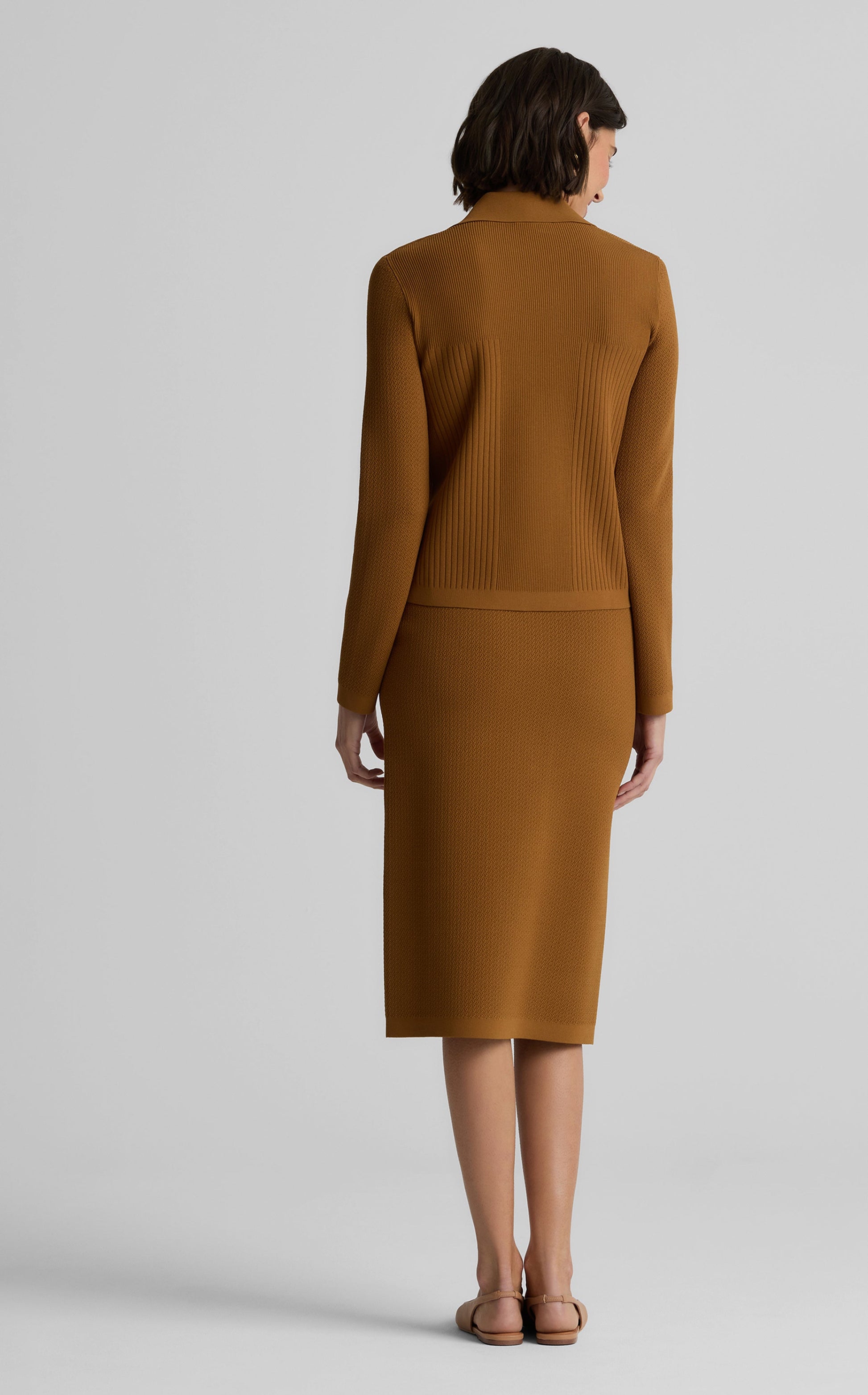Worn on its own or layered over shells and tees, the Ellis Jacket instantly adds sophistication to any ensemble with its bold gold buttons and decorative flap pockets. Our comfortable and lightweight Madison Knit gives this delicately ribbed jacket both ease and polish as you move effortlessly through workdays and weekends alike. Pair with the Shiloh Skirt in Madison Knit