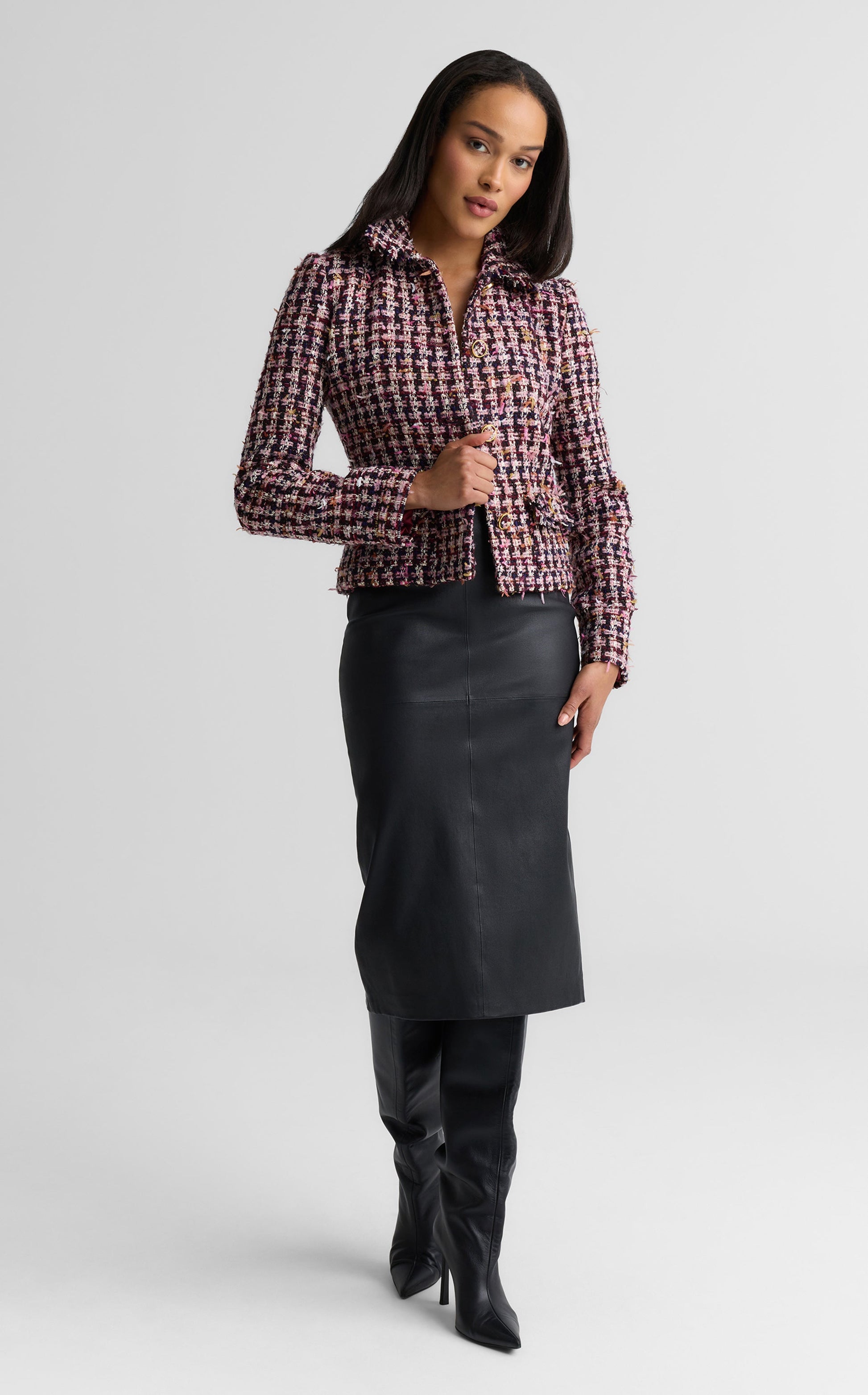 The Bristol seamlessly pairs whimsy and refinement. Cut from fluttery Lachman Tweed and finished with fabric-covered buttons, this jacket playfully reinterprets a traditional style. Wear with the Margot Skirt as a coordinated set, or mix and match with denim and tie-front blouses for a more eclectic effect.