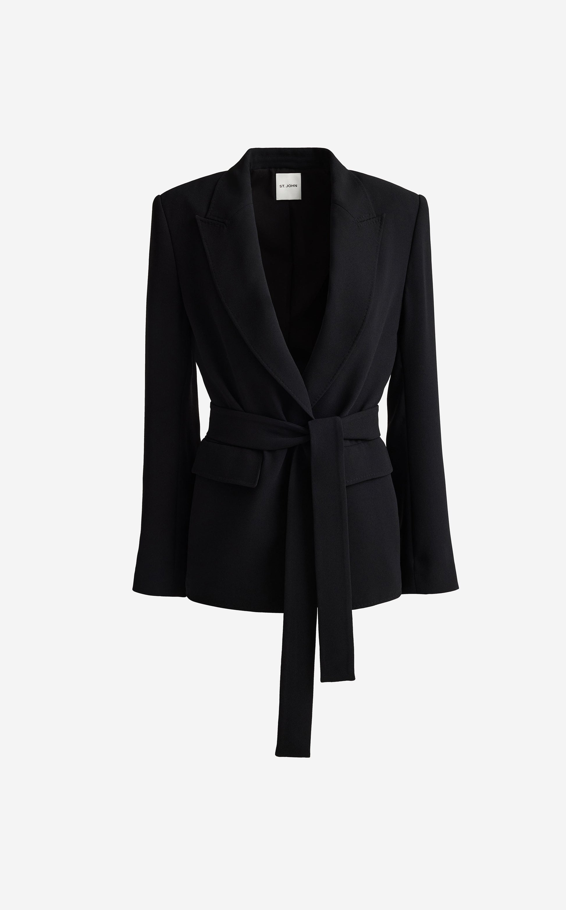 The Juliana puts a softer spin on traditional tailoring. Made from fluid Satin Back Crepe in timeless Black to drape effortlessly on the body, this evening-ready jacket features a tie waist for the most flattering fit. Wear as a luxurious layer over formal dresses or pair with the matching Tabitha Pant for a graceful take on the tux.