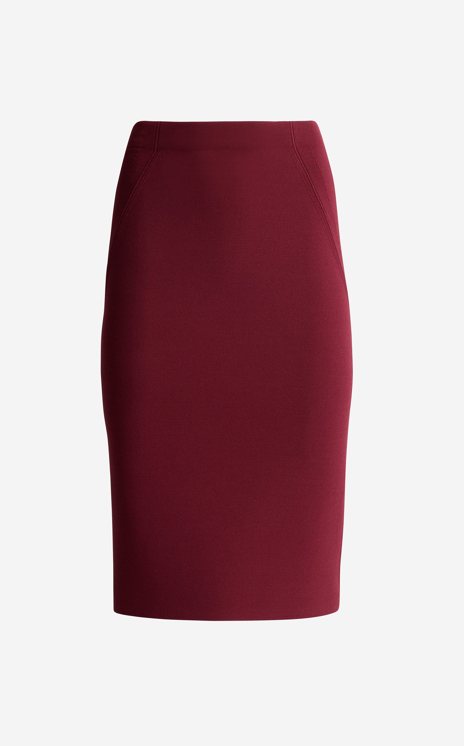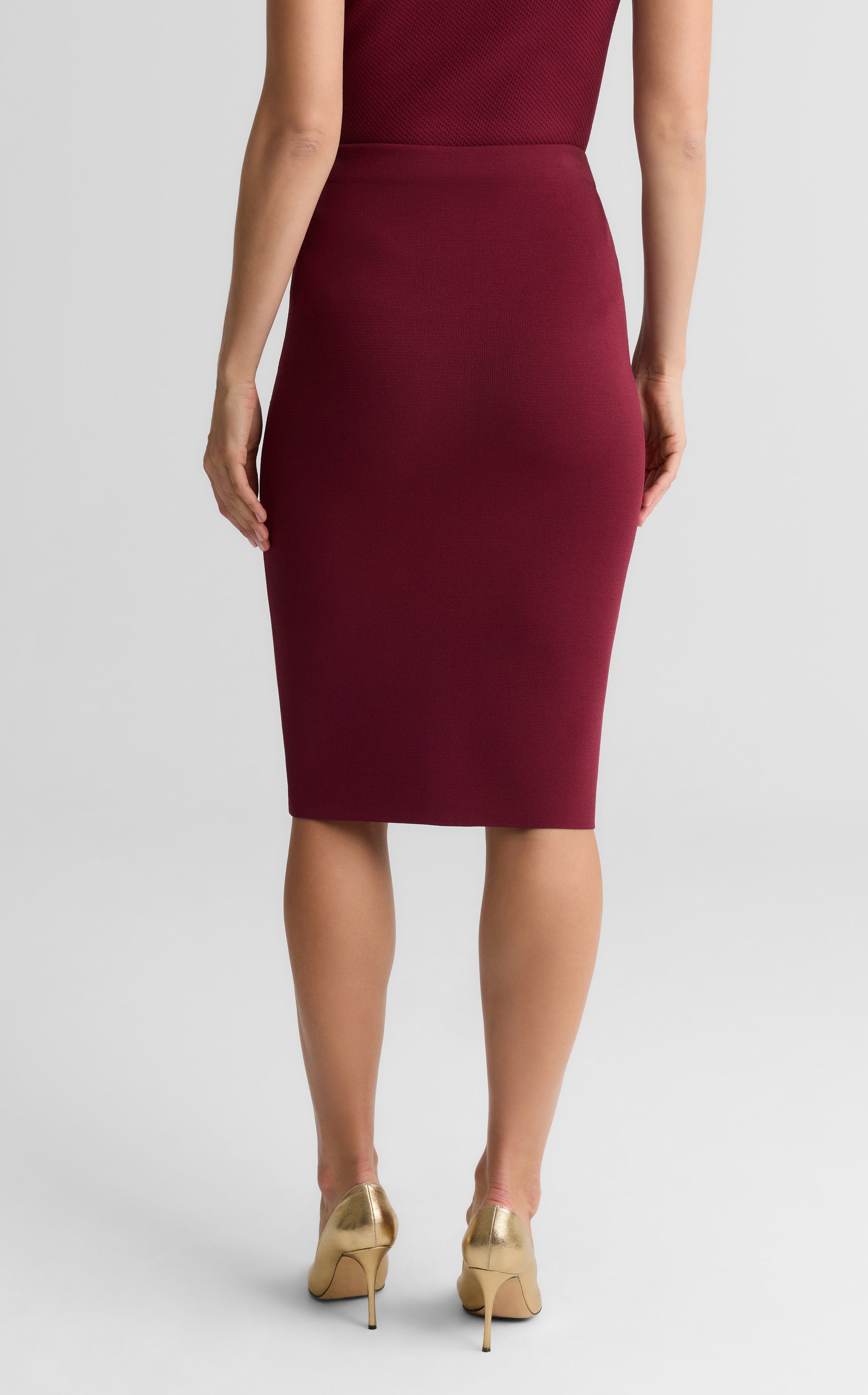 For elegance that takes you effortlessly throughout the day, the Nina always delivers. Crafted in our signature Santa Roma Knit in rich Bordeaux, this sleek pencil skirt comfortably forms to the body for a flattering fit and ease of movement. Pair with the Kay Jacket for a refined take on workwear.