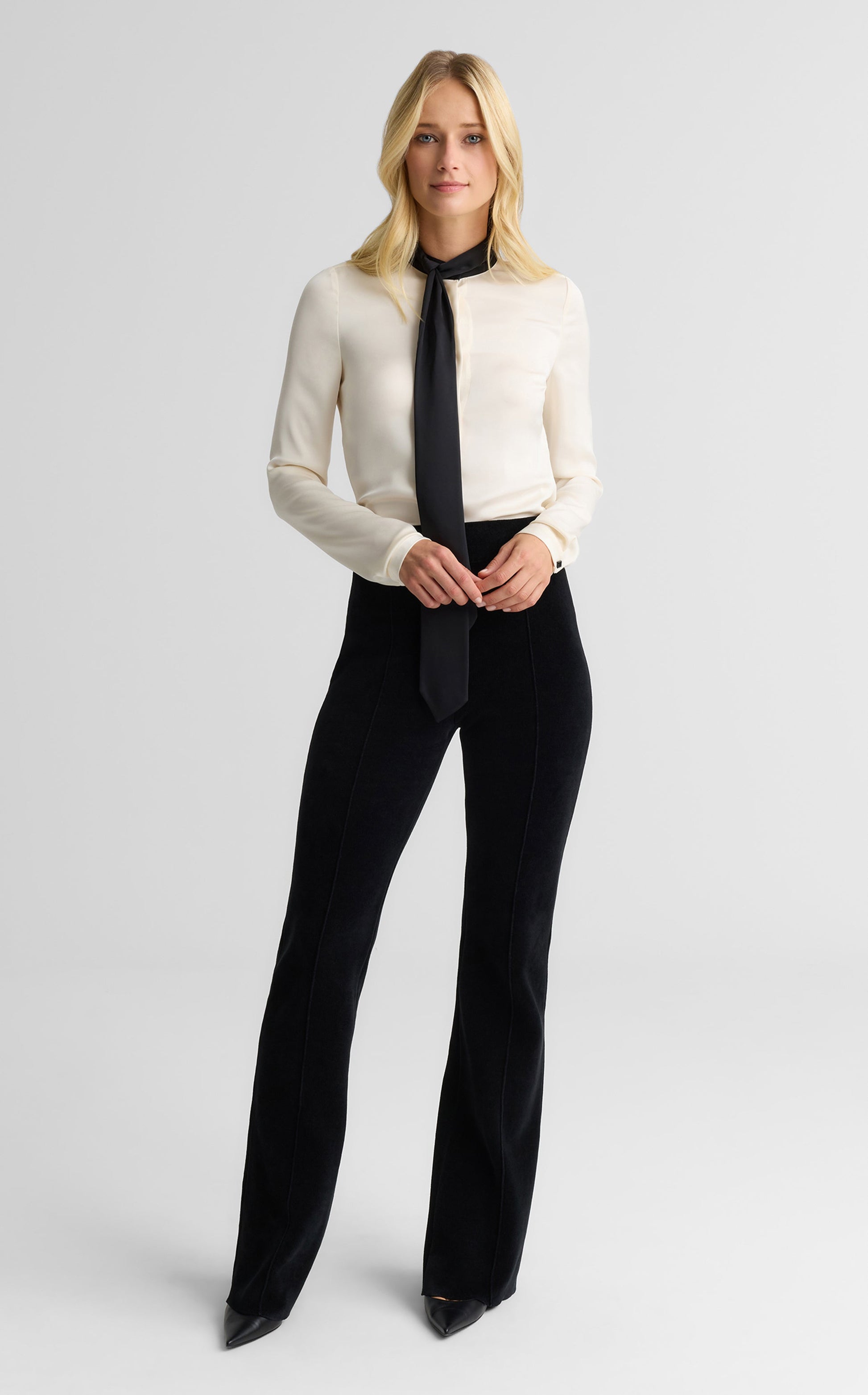 Inspired by ‘70s icons, the Charlotte reimagines a legendary silhouette for the modern woman. Made with our luxurious Velvet Monte Carlo Knit with a high rise and boot cut leg, this universally flattering pant pairs perfectly with the Ellen Jacket for an updated take on the tuxedo.