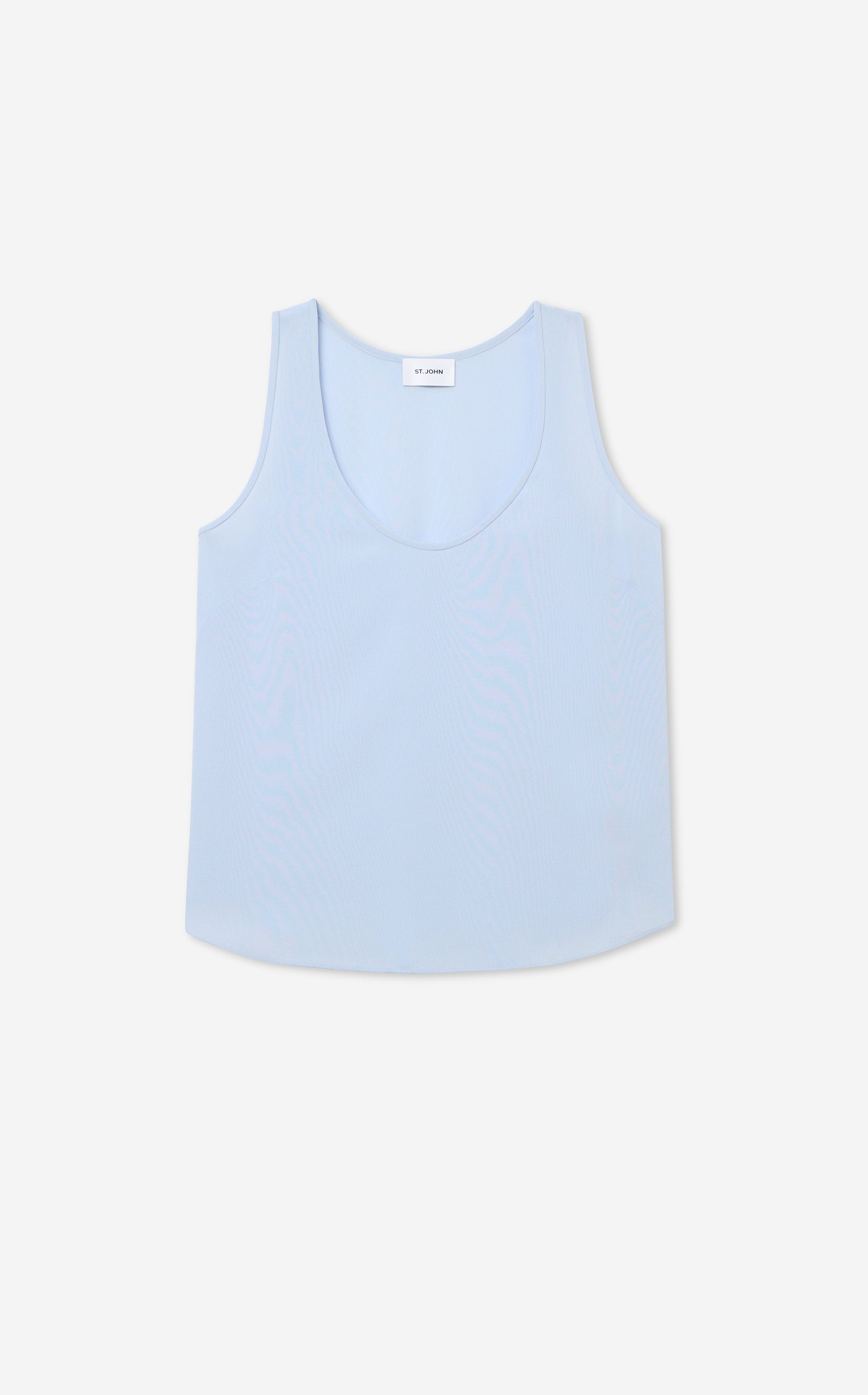 In airy Blue Lagoon, the Vanessa layers luxuriously under blazers and leather jackets, but can also be worn on its own as a breezy but sophisticated top in warmer weather. The elegant drape from its fluid silk crepe as well as its graceful U-neckline transforms the classic shell into an elevated essential.