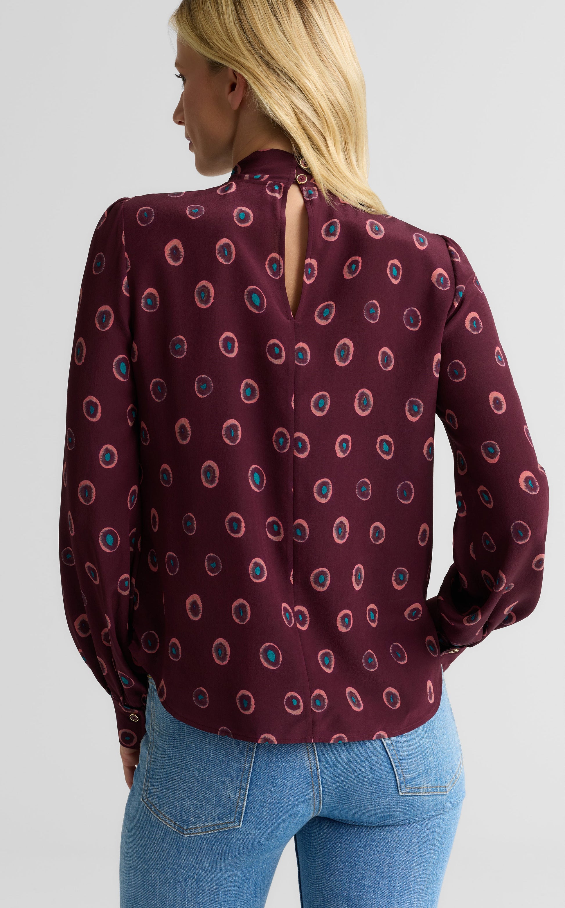 Taking its inspiration from ‘70s style icons, the Hannah balances elements of ease and polish for the utmost versatility. Crafted in our Abstract Ink printed crepe de chine, this tie-front blouse is statement-making with denim alone, but was also designed to expertly mix with harmonious patterns, like a multicolored tweed set.